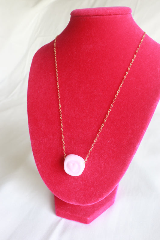 Pink Glass Heart Stamp Necklace
