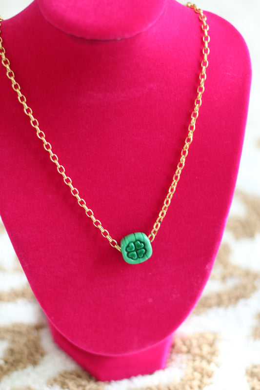 Green Clover Glass Necklace